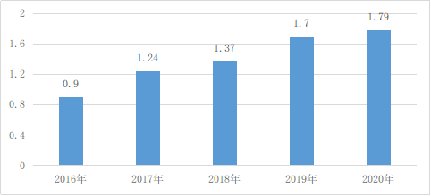 圖8 2017年至2020年我國(guó)益農(nóng)信息社數(shù)量(萬(wàn)個(gè))
