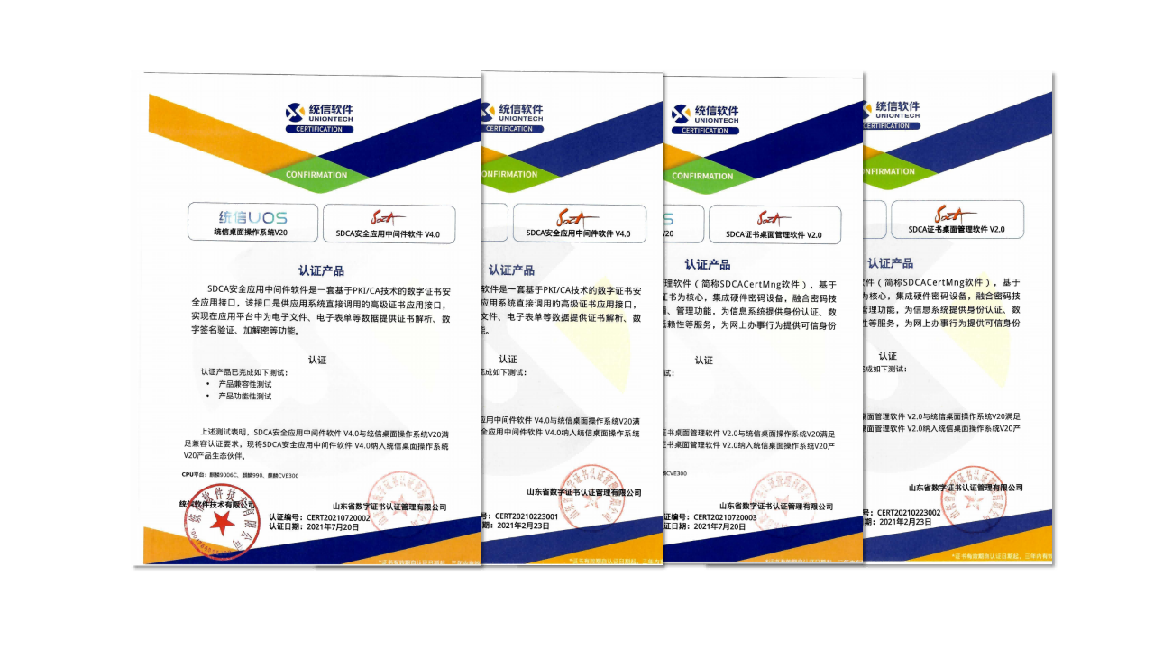 山東CA與麒麟、統(tǒng)信完成主流國產(chǎn)處理器平臺上軟硬件兼容性適配認證