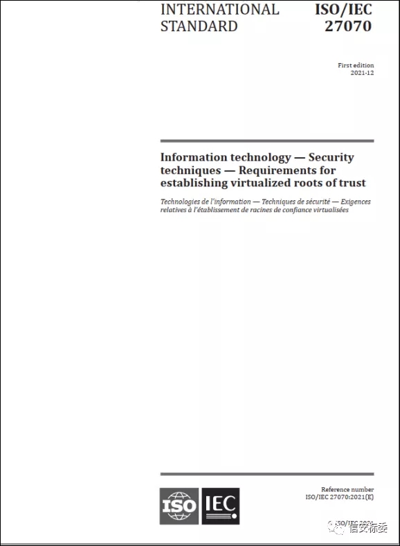 我國主導(dǎo)提出的國際標(biāo)準(zhǔn)ISO/IEC 27070《信息技術(shù) 安全技術(shù) 虛擬信任根建立要求》正式發(fā)布