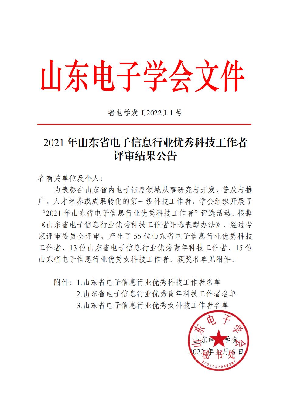 熱烈祝賀我公司修竹同志榮獲2021年山東省電子信息行業(yè)優(yōu)秀女科技工作者榮譽稱號