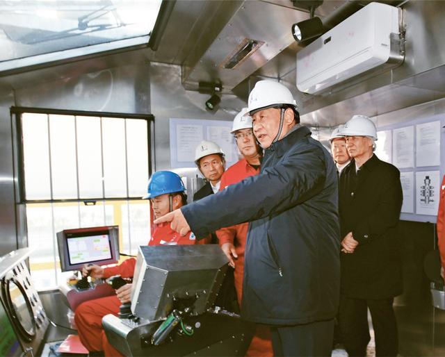 2021年10月22日下午,中共中央總書記、國(guó)家主席、中央軍委主席習(xí)近平在山東省濟(jì)南市主持召開深入推動(dòng)黃河流域生態(tài)保護(hù)和高質(zhì)量發(fā)展座談會(huì)并發(fā)表重要講話。這是座談會(huì)前,習(xí)近平21日下午在位于東營(yíng)市萊州灣的勝利油田萊113區(qū)塊考察時(shí),登上二層鉆井平臺(tái),察看鉆井自動(dòng)化設(shè)備。 新華社記者 李學(xué)仁/攝