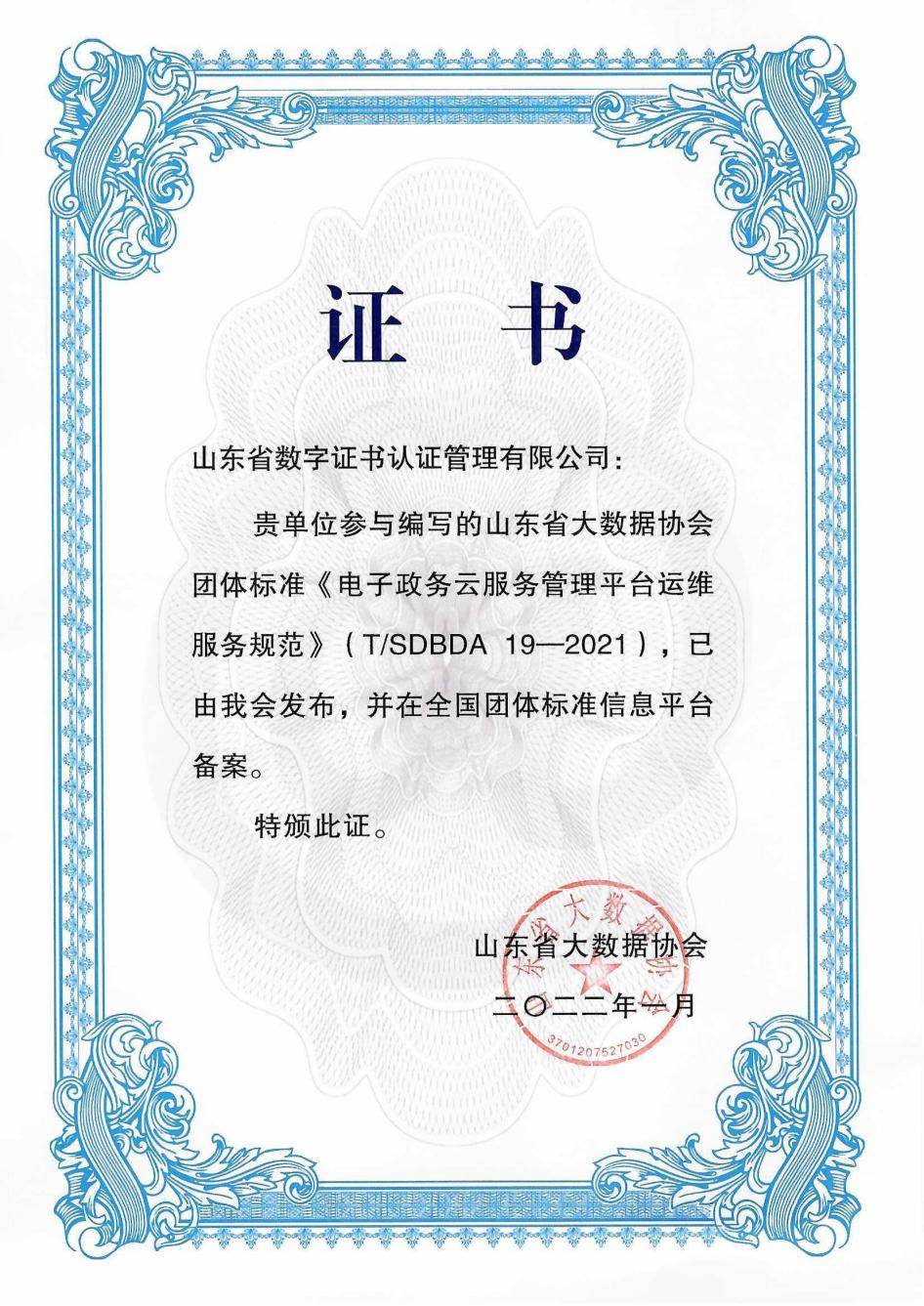 《電子政務(wù)云服務(wù)管理平臺運(yùn)維服務(wù)規(guī)范》團(tuán)體標(biāo)準(zhǔn)發(fā)布 山東CA參編