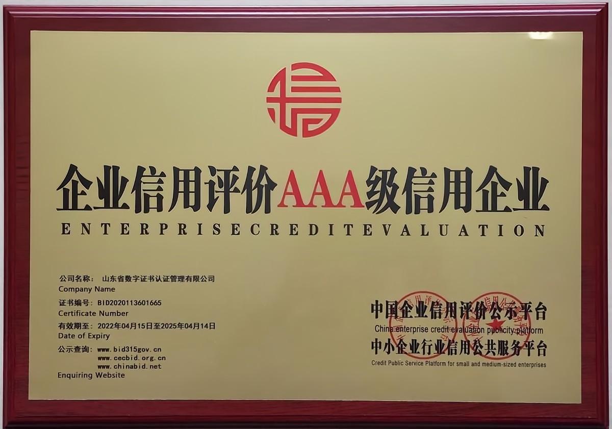 山東CA作為一家專業(yè)的電子認(rèn)證服務(wù)提供商、網(wǎng)絡(luò)可信服務(wù)運營商和信息安全解決方案提供商,始終將“誠信”作為公司品牌價值的核心。獲評企業(yè)信用AAA等級是對公司實力與良好發(fā)展前景的充分認(rèn)可,也是對山東CA誠信價值和品牌價值的充分肯定,我們將再接再厲,充分發(fā)揮誠信經(jīng)濟價值,增強信創(chuàng)服務(wù)能力,為數(shù)字經(jīng)濟發(fā)展筑牢“可信之基”。